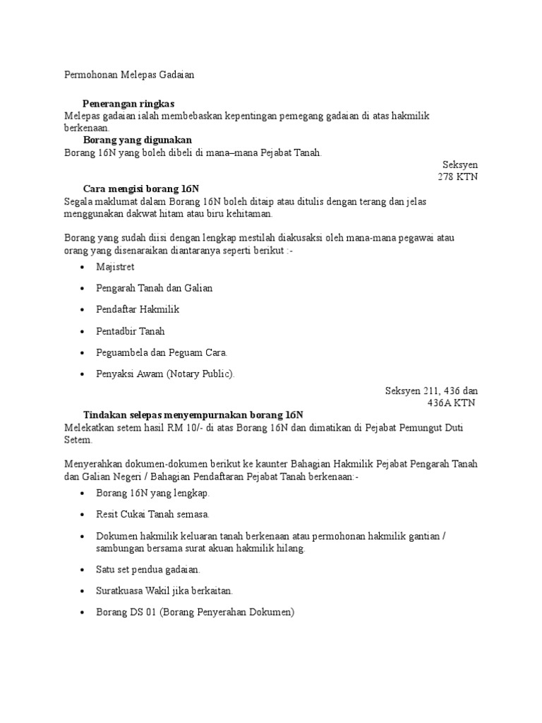 Borang melepaskan gadaian 16n hendaklah bersaiz a3 depan dan belakang 4. Borang butir butir permohonan tanah oleh individu.