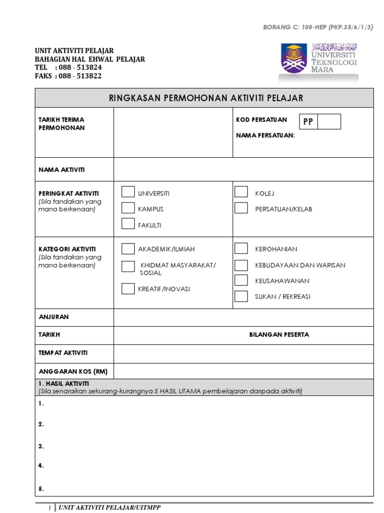 Borang permohonan dataran masmed 5. Pihak uitm berhak menolak permohonan menarik balik surat tawaran sekiranya maklumat tersebut didapati palsu. Borang keahlian kelab dan persatuan masmed 2. Borang pengesahan penceramah luar 11.