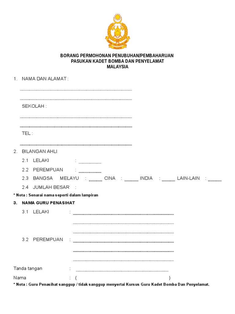 Saya berhasrat untuk dilantik sebagai pegawai bomba bantuan dan saya akan menerima dan mematuhi semua terma dan. Saya kami mengaku bahawa sepanjang pengetahuan saya kami segala keterangan yang diberikan dalam borang permohonan ini adalah benar dan betul. Borang pbb 3 jabatan bomba dan penyelamat malaysia permohonan bagi pegawai bomba bantuan peraturan 3 peraturan peraturan perkhidmatan bomba pegawai bomba bantuan 2014 ketua pengarah jabatan bomba dan penyelamat malaysia 1. Ambilan terkini jawatan kosong bomba.