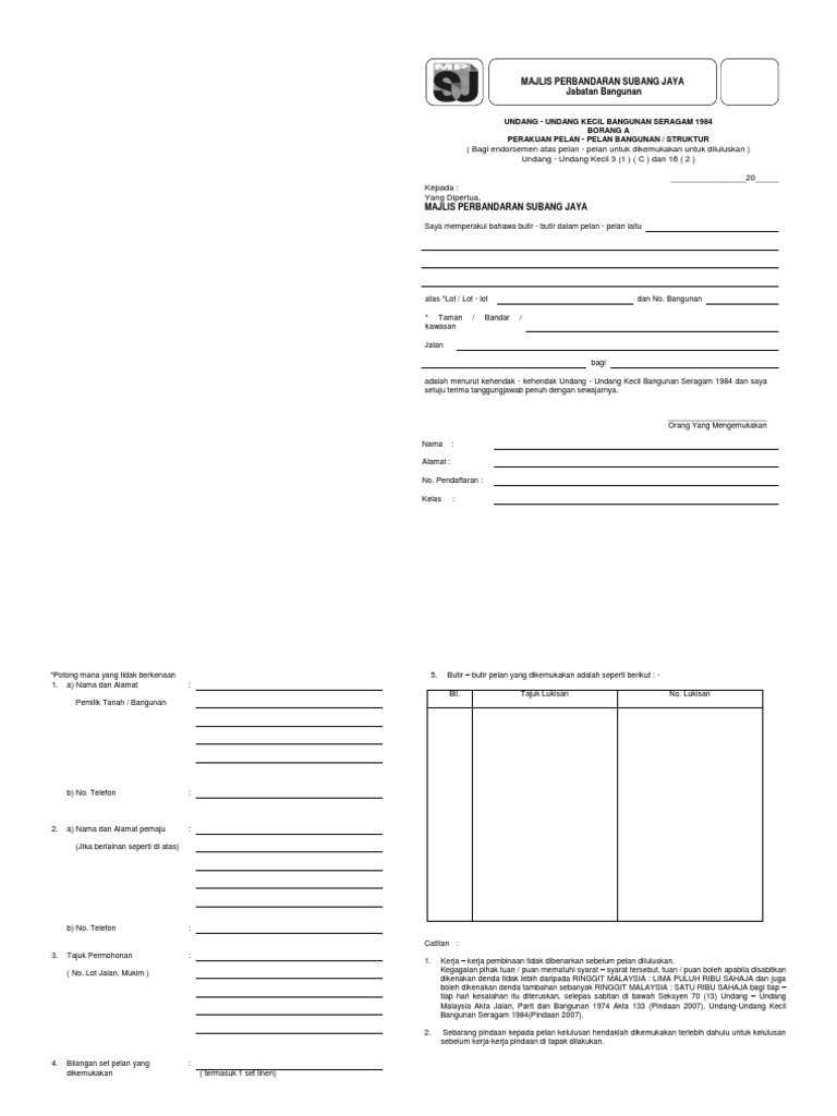 Borang a mpsj. Borang permohonan pemeriksaan akhir i jabatan landskap mpsj g 1 10. Kegunaan pejabat ada tiada diisi oleh pemohon mpsj spb pt kp 03 rk 01 pindaan. Majlis perbandaran subang jaya jabatan pelesenan. Selamat datang ke laman web rasmi majlis perbandaran subang jaya welcome to official website of subang jaya municipal council.
