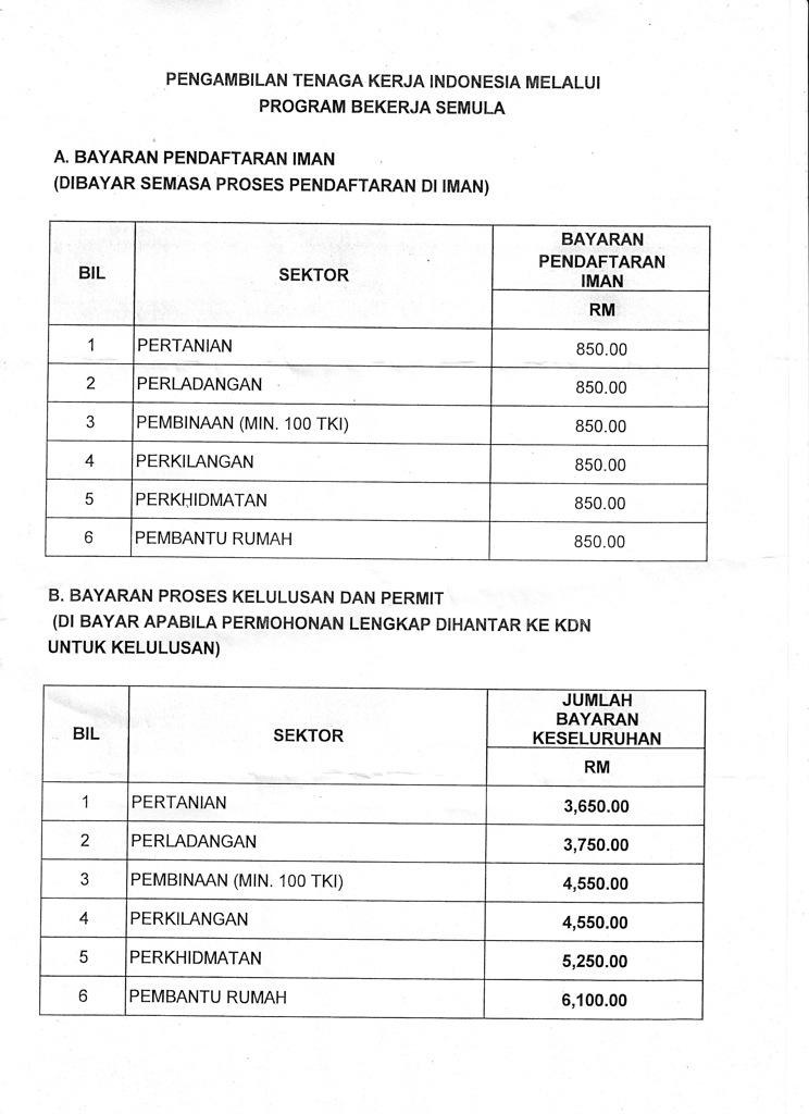 Salinan resit bayaran wang cagaran jaminan bank jaminan insuran tidak kurang daripada 18 bulan. Setiap majikan dikehendaki melengkapkan dan menghantar borang pa 1 13 ke pejabat tenaga kerja terdekat dalam tempoh empat belas 14 hari dari tarikh penggajian pekerja asing tersebut. Blok d1 d2 d9 kompleks d pusat pentadbiran kerajaan persekutuan 62546 putrajaya tel. 03 88891613 03 88891610 pro at moha dot gov dot my.