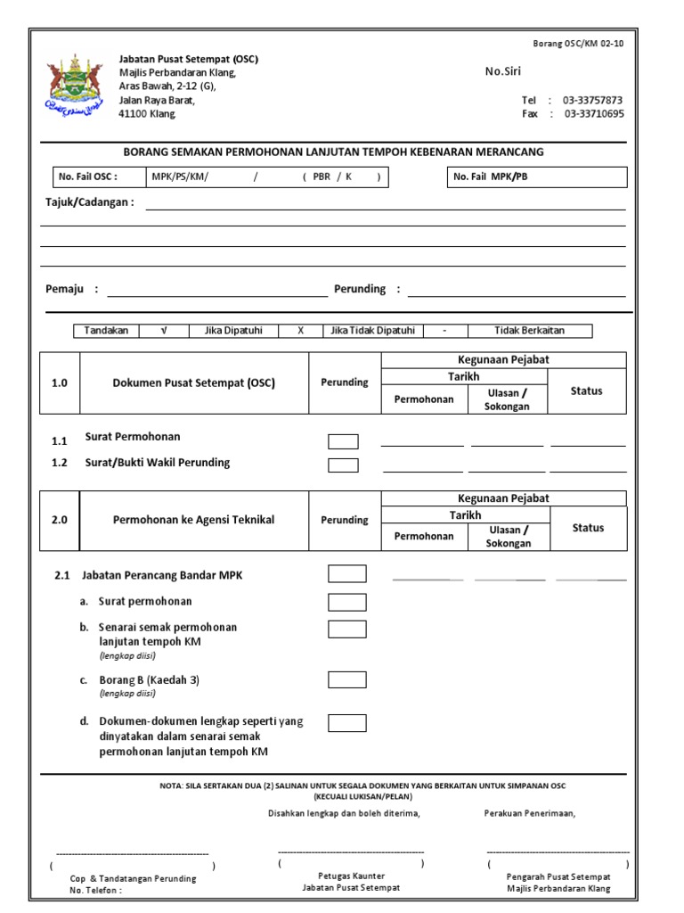 Senarai semak senarai semak km borang i sekat surat pekeliling yb. Kebenaran merancang tambak laut item bil dokumen di kaunter osc hardcopy softcopy dokumen osc online format pdf autocad excel borang a 1 borang permohonan kebenaran merancang borang permohonan kebenaran merancang b 2 borang a. B fee permohonan untuk perlanjutan kebenaran merancang jenis pemajuan kadar fee unit meter persegi jumlah yuran 1. Jenis permohonan perkara 1.