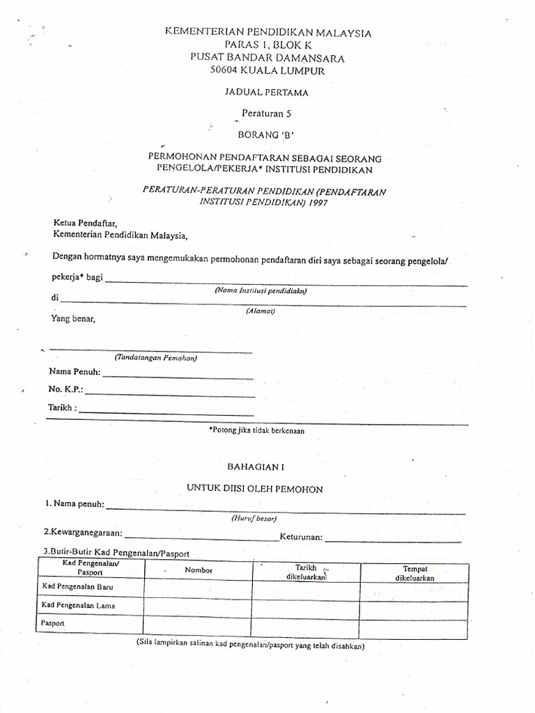 40150 ஷல ஆலலமள 2 organisasi அமமபளப 1. Borang b permohonan pendaftaran sebagai seorang.