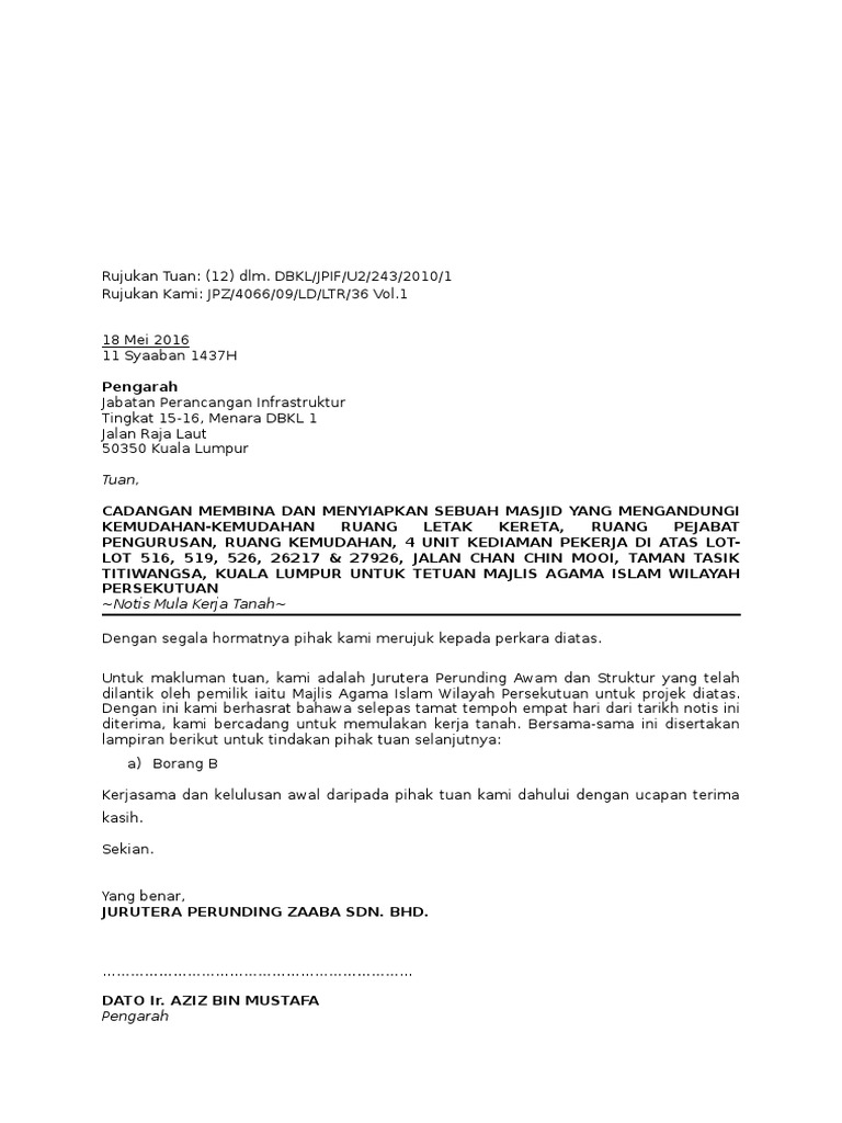Dipertua majlis perbandaran subang jaya saya memberi notis bahawa selepas tamat tempoh 4 hari dari tarikh notis ini diterima saya bercadang untuk memulakan menyambung semula kerja bangunan iaitu. Borang maklumat perunding dan kontraktor berdaftar yang. Home klch media download e form city planning department peringkat 3 notis memulakan kerja tanah borang b notis memulakan kerja tanahsummary.