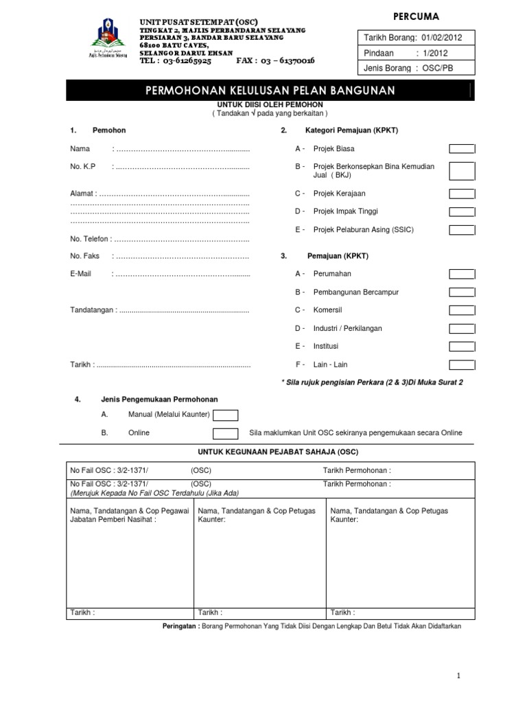 Borang b osc. Borang permohonan kebenaran merancang papan iklan billboard 323 1 kb. 2 salinan surat kelulusan pelan bangunan sesalinan untuk osc 6. Borang permohonan pemeriksaan akhir i. Borang dikembalikan tidak lengkap kegunaan osc sahaja borang osc ccc 3.