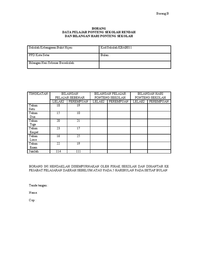 Borang B Pengesahan Sekolah Rendah