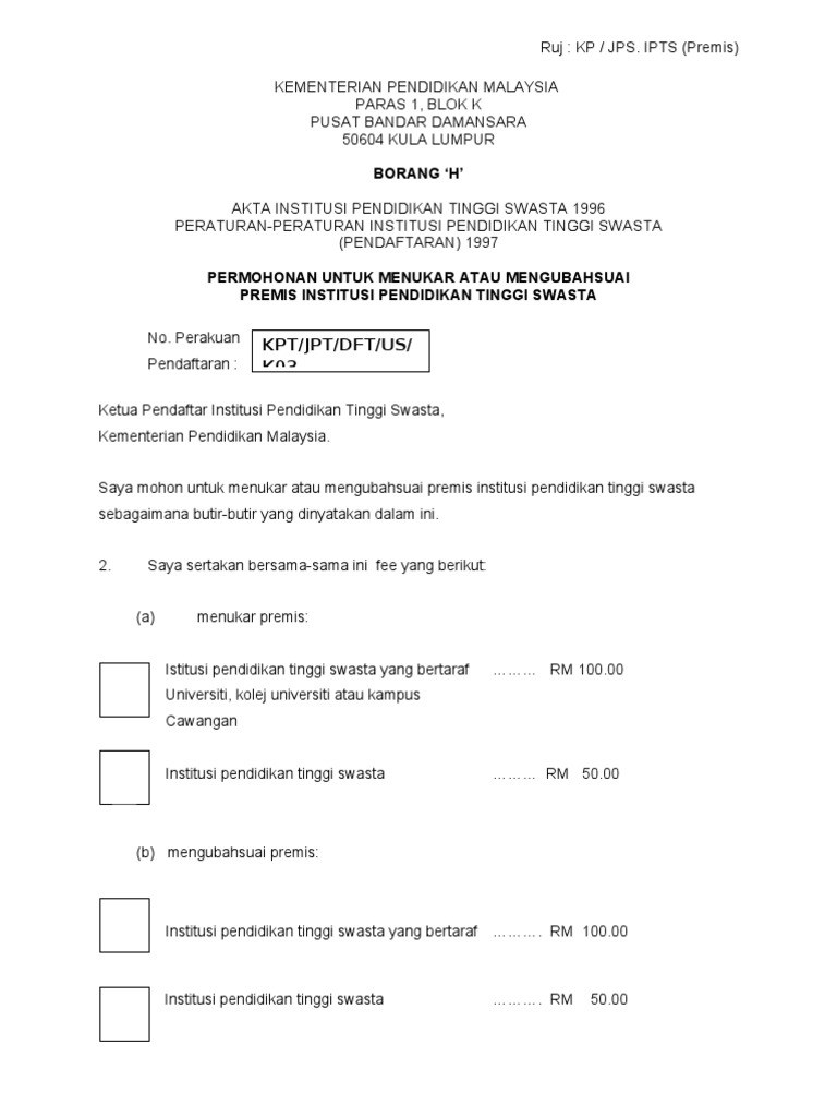 2 permohonan pembaharuan pendaftaran bagi tahun. Bagi dokumen mqa 02 bilangan salinan adalah 4 softcopy cakera padat. Borang 4 peraturan 17 1 permohonan untuk membaharui perakuan pendaftaran pengerusi lembaga pembantu perubatan kementerian kesihatan malaysia aras 2 blok e1 kompleks kerajaan e pusat pentadbiran kerajaan persekutuan 62590 putrajaya tuan saya ingin membaharui perakuan. Format dokumen adalah seperti yang dinyatakan dalam coppa edisi kedua bagi dokumen mengikut format oleh badan profesional berkaitan bilangan.