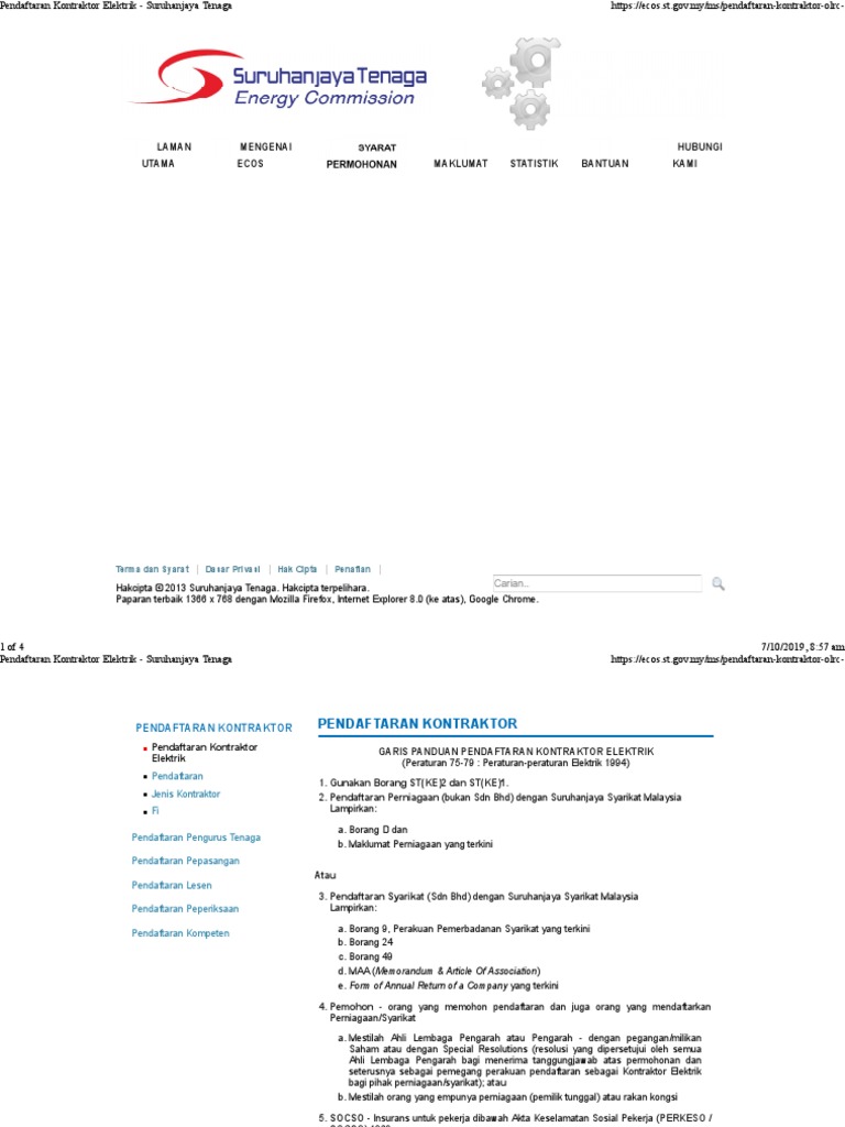 Borang b st. 12 jalan tun hussein precinct 2 62100 putrajaya malaysia. Pelan lukisan skematik borang g perakuan penyeliaan dan penyiapan borang h perakuan ujian bagi pepasangan yang telah berdaftar yang ingin diperbesarkan atau diubahsuai pemunya atau pengurusan pepasangan tersebut dikehendaki memberi notis kepada pejabat st kawasan di mana pepasangan itu didaftarkan dan hendaklah mengemukakan pelan. For the purpose of educating and enhancing public knowledge in the energy sector st has published several publications including books guidelines and magazines as follows. 19 september 2012 no.