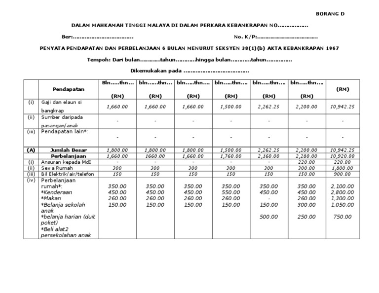 Borang d insolvensi. Jabatan insolvensi malaysia tidak akan bertanggungjawab ke atas sebarang kehilangan atau kerosakan yang di akibatkan oleh penggunaan maklumat yang dicapai daripada laman web ini. D jika lebih daripada rm60 000 tetapi tidak lebih daripada rm120 000 e jika lebih daripada rm120 000 fi rm54 00 tiap tiap minggu rm72 00 tiap tiap minggu rm90 00 tiap tiap minggu 6. 03 8885 1743 e mel. Hakcipta terpelihara 2017 bahagian hal ehwal undang undang bheuu dan jabatan insolvensi malaysia mdi penafian.