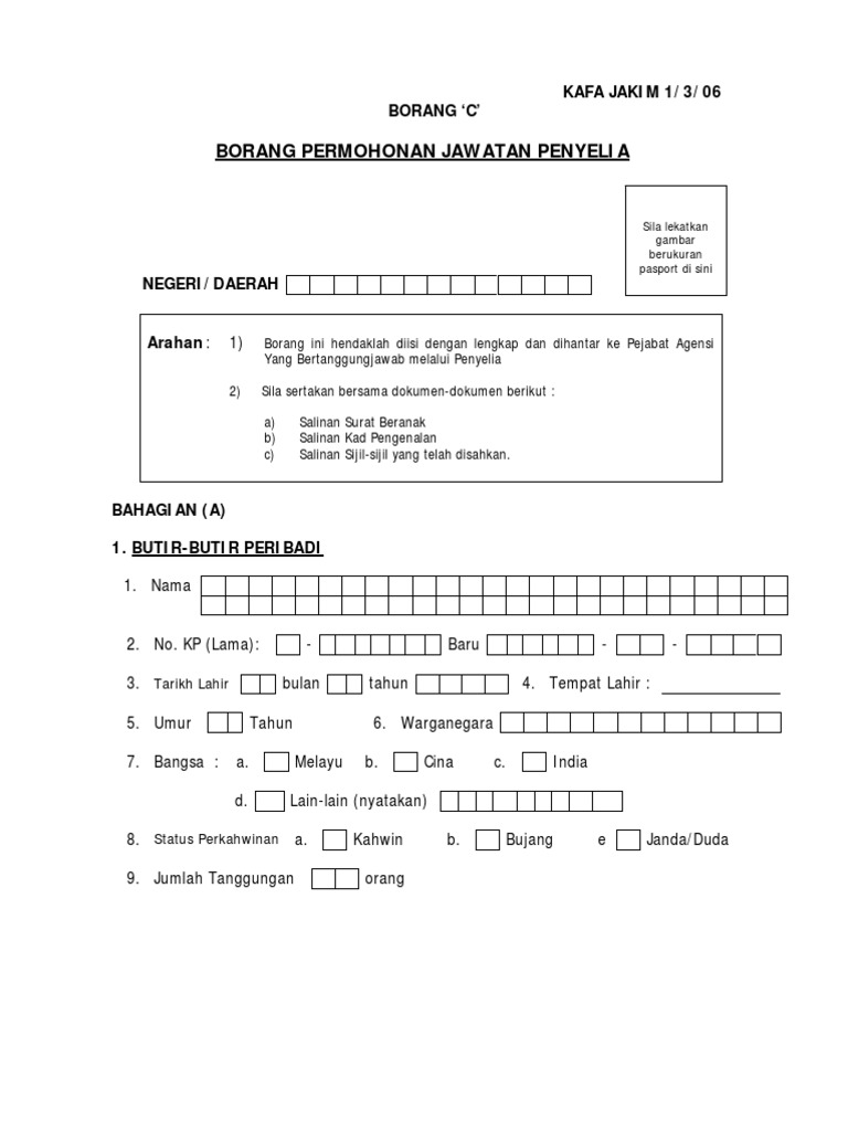 Borang d jakim. 03 8892 5005 emel. Kafa jakim 1 4 2008 borang d borang permohonan jawatan guru kafa negeri. 2 permohonan hendaklah dihantar ke alamat pejabat pendidikan daerah ppd negeri kelantan sebagaimana yang tertera di lampiran mengikut ppd yang dipohon. Permohonan hendaklah dihantar sebelum atau pada 9 mei 2019 khamis ke alamat.