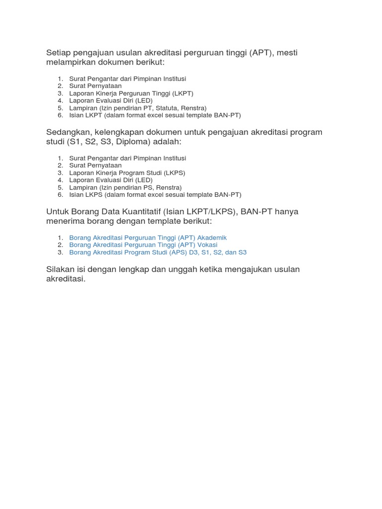 Borang indikator kinerja utama 1. Surat pengantar dari pimpinan institusi. Cara cepat usulkaan akreditasi ke ban pt. Laporan evaluasi diri format dan panduannya sbb.