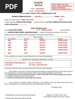 Tenang dan cuba bersikap rasional. Borang dda form dda regulation 4a malaysia state of wilayah persekutuan district of kuala lumpur small estates distribution act 1955 distribution suit no. Bayaran fi harta pusaka perlu dijelaskan kepada pejabat tanah. Borang a versi english.