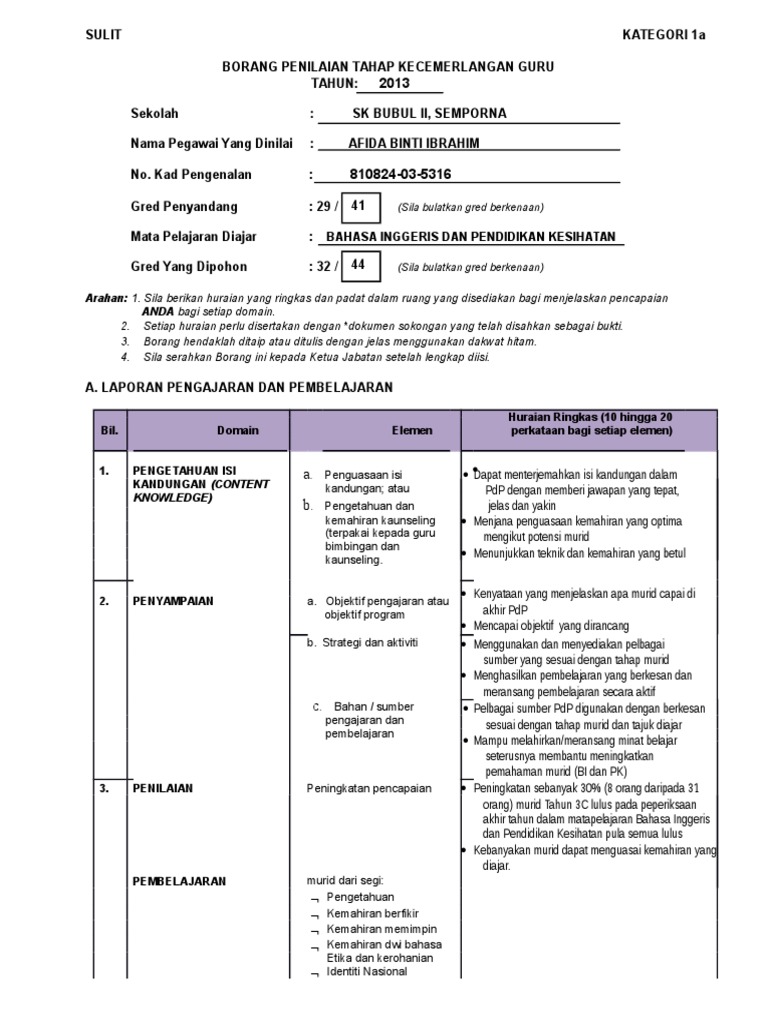 Mengalokasikan dana untuk penyusunan dokumen mutu kelengkapan borang h. Skor yang diberi akan membantu dalam memberi gambaran keberhasilan seseorang guru dalam menjalankan tugas. 2 ridzal borang e prestasi guru dlm format word 1. Jikalau anda penjawat awam jangan lupa untuk update sistem hrmis.