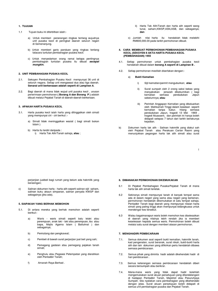 Pembahagian harta pusaka kecil pembahagian harta pusaka kecil. Bagi daerah di mana tiada unit pusaka kecil urusan penerimaan permohonan borang a dan borang p boleh dibuat melalui pejabat tanah di daerah daerah berkenaan. Mursyidah binti ab halim a 140122 miss sarina baka a 142316. Harta pusaka kecil tahun 1955 small estate distribution act 1955 akta pembahagian harta pusaka kecil 1955 ialah satu akta yang digubal untuk memproses dan menyelesaikan harta pusaka kecil si mati.