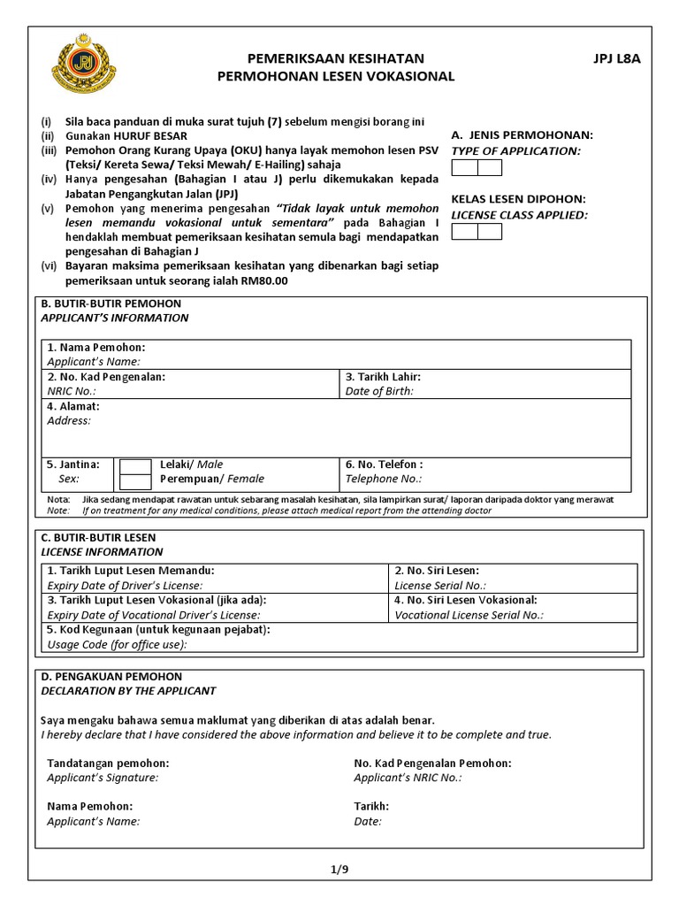 Borang jpj e hailing. Untuk kegunaan jpj 1 1 1 jpjk8 pind 1 2016. Jabatan pengangkutan jalan jpj baru sahaja mengumumkan bahawa pemandu atau bakal pemandu perkhidmatan e hailing seperti grab mycar mula perlu memiliki lesen vokasional psv teksi e hailing sebelum 12 julai 2019 ia selaras dengan peruntukan di bawah seksyen 56 akta pengangkutan jalan 1987 apj 1987. Jabatan pengangkutan jalan malaysia upj telah memaklumkan bahawa pemandu atau bakal pemandu perkhidmatan teks e hailing yang memenuhi syarat memohon lesen vokasional psv teksi e hailing boleh mendaftar bermula 1 april 2019 di institut memandu dan pusat latihan memandu e hailing operator eho yang diktiraf oleh jpj. Pengakuan pengisytiharan e hailing.