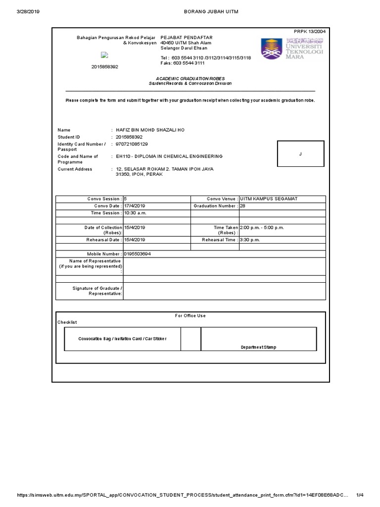 Borang jubah uitm. Tanpa sila masukkan no pelajar dan no kad pengenalan anda untuk membuat pengesahan anda untuk membuat pengesahan. Pengambilan lebih awal adalah tidak dibenarkan. Proses pinjaman jubah dihentikan semasa sesi raptai berlangsung. Proses pinjaman jubah dihentikan semasa sesi raptai berlangsung.