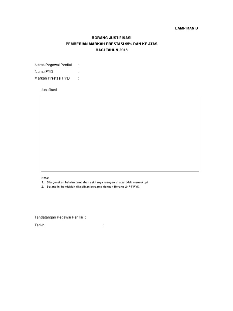 Borang justifikasi pemberian markah prestasi 95 dan ke atas kementerian pendidikan malaysia.