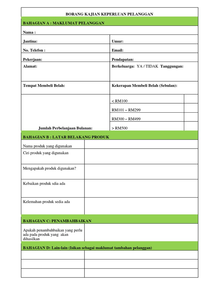 Borang Kajian Keperluan Pelanggan Tingkatan 3