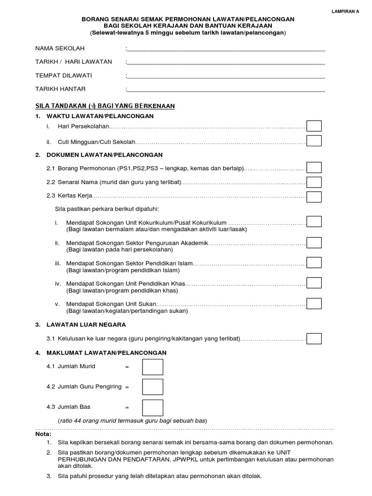 Borang keluar negara jpwpkl. Borang permohonan lampiran 1 dan lampiran 2 1 salinan 2. Permohonan untuk menjalankan tugas tugas rasmi di luar pejabat seperti di atas adalah diluluskan tidak diluluskan. Permohonan perjalanan pegawai awam ke luar negara atas urusan persendirian maklumat pemohon nama pegawai. Pdf borang permohonan surat tiada halangan untuk mengikuti pengajian ke luar negara.