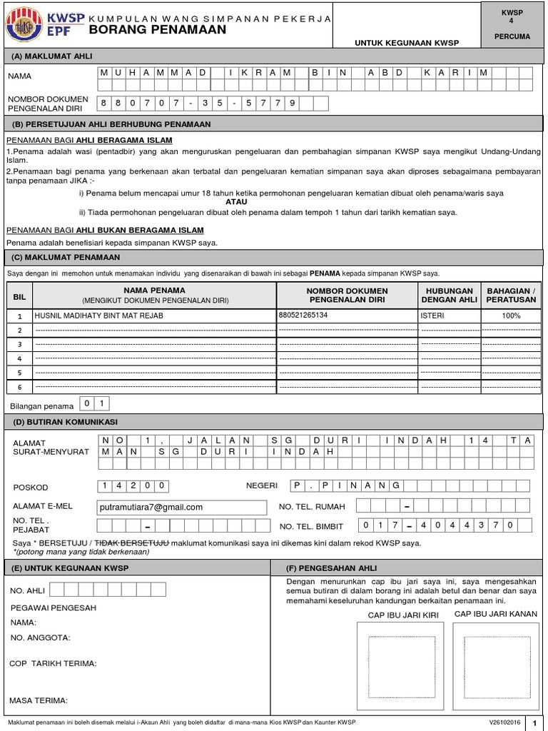 Borang kwsp 1 1 i cop rasmi syarikat. Kwsp 8 borang f penyata kiriman wang caruman tunggakan. Wakil majikan aktifkan i akaun di myepf menggunakan kod pengaktifan dalam tempoh 30 hari. 220 jalan sultan 46720 petaling jaya selangor darul ehsan.
