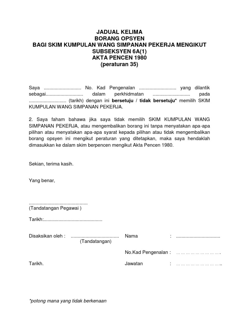 Pemberhentian kwsp sepatutnya kerani yg uruskan. Penjawat awam boleh mengeluarkan wang daripada akaun 1 dan 2 mengikut kiraan berikut. Baki kwsp boleh dikeluarkan lagi selepas kwsp diberhentikan. Borang lampiran a pengmaskinian maklumat pesara tanggungan.