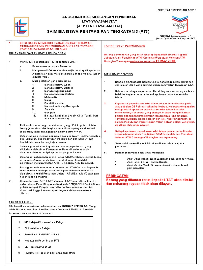 Borang permohonan yang telah lengkap hendaklah dihantar kepada. Lembaga tabung angkatan tentera tingkat 12 bangunan ltat jalan bukit bintang peti surat 11542 50748 kuala lumpur emel. Sebarang perubahan kepada keputusan peperiksaan yang diluluskan oleh pihak kementerian pendidikan hendaklah disertakan bersama slip keputusan yang terdahulu. Pelaburan dana unit amanah ini dibeli oleh ltat bagi pihak pencarum wajib sukarela dan diberikan secara percuma semasa berkhidmat dengan angkatan tentera.