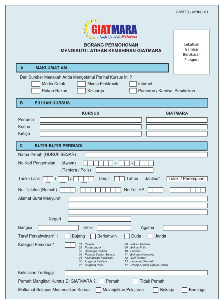 Borang online giatmara. Corporate the establishment of giatmara aims to provide technical and vocational skills training to youths in rural areas and in towns to enable them in acquiring skills as preparation to become skilled work force and technical entrepreneurs in meeting the needs of the industry and needs of economic development as well as entrepreneurship within local areas and in the country. Permohonan giatmara adalah dipelawa untuk mereka yang berumur 15 tahun keatas samada lepasan spm atau. Untuk download borang permohonan sila rujuk maklumat lanjut di sini. Berita baik buat pelajar bumiputera yang bercadang untuk mengikuti latihan kemahiran.