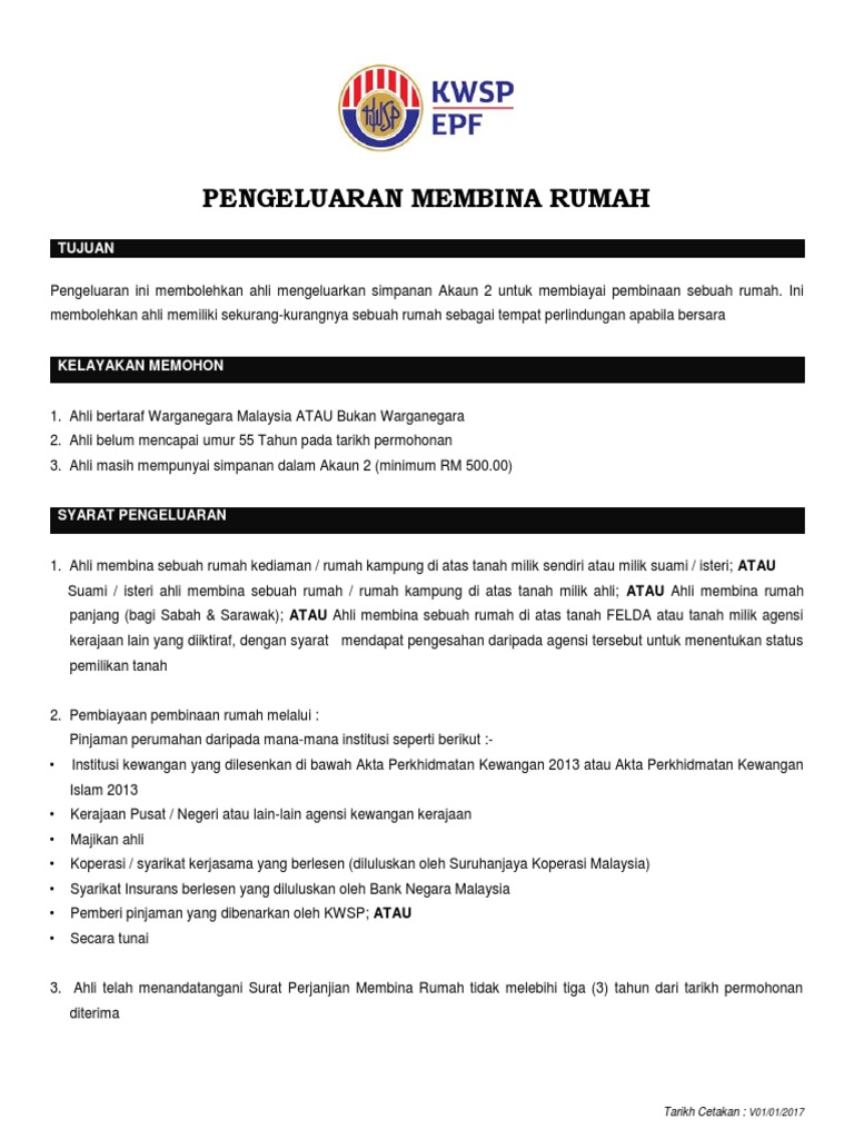 Membina sebuah rumah sememangnya satu pelaburan yang terbesar dan penting bagi setiap orang. Membina sebuah rumah sememangnya satu pelaburan yang terbesar dan penting bagi setiap orang. Ahli bertaraf warganegara malaysia atau bukan warganegara. Bagi membantu ahli membina rumah impian mereka pihak kwsp membenarkan ahli membuat pengeluaran daripada akaun 2 dengan tujuan pembiayaan pembinaan rumah.