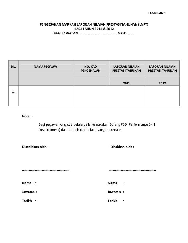 Borang pengesahan markah lnpt. Borang lnpk ini boleh digunakan oleh ketua jabatan bagi tujuan berikut. A menilai prestasi seseorang pegawai yang akan dipertimbangkan kenaikan pangkat setelah memangku sekurang kurangnya enam 6 bulan. Pencapaian pyd sebenarnya pada tahap biasa sahaja malah tidak memberikan. Sukacita dimaklumkan bahawa markah lnpt bagi semua kakitangan yang telah mengisi borang e lnpt dan telah lengkap penilaian kini boleh disemak melalui sistem e lnpt.