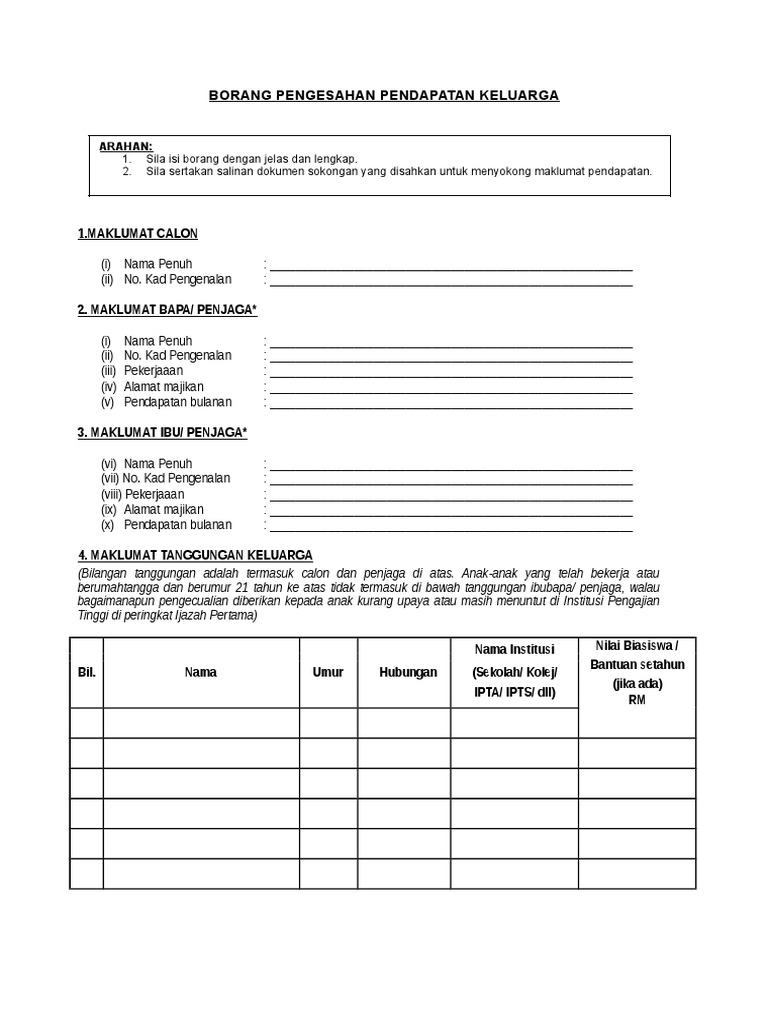 5 slip gaji pengesahan pendapatan bagi yang tak ada slip gaji. Borang maklumat murid untuk sekolah di malaysia. Sekolah kolej ipta ipts dll nilai biasiswa bantuan setahun jika ada rm sila gunakan lampiran sekiranya ruang di. Borang pengesahan pendapatan keluarga hanya diisi oleh bapa ibu penjaga yang tidak mempunyai slip gaji penyata pendapatan bagi yang tidak bekerja a maklumat pendapatan.