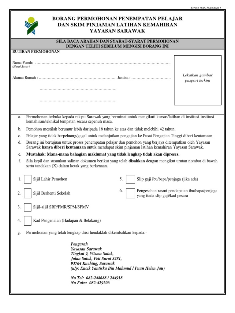 Borang permohonan skim pinjaman tabung pendidikan tinggi sarawak hied. Ketua masyarakat bahagian bintulu. Borang yang tidak lengkap akan ditolak permohonan dan tidak akan diproses. Penyata cukai pendapatan lhdn ibubapa penjaga pemohon yang bekerja 2.