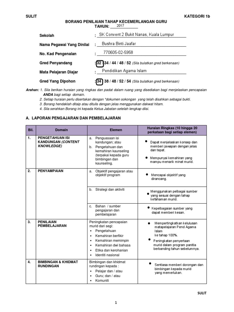 Sulit kategori 1b sulit 1 borang penilaian tahap kecemerlangan guru tahun.
