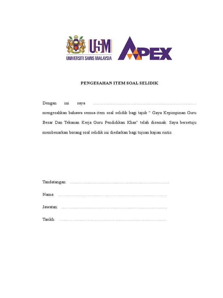 Simpan simpan borang soal selidik untuk nanti. Temukan segala yang ditawarkan scribd termasuk buku dan buku audio dari penerbit penerbit terkemuka. Attribution non commercial by nc format tersedia. Soal selidik terhadap okp sila tandakan jika berkenaan.