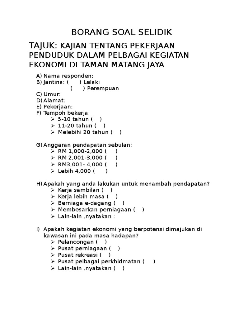 Segala pandangan dan komen dari pihak tuan puan kami. Anda bisa mendownload atau mencetak gambar atau foto contoh borang soal selidik gaya hidup. Kemungkinan responden menjawab soalan dengan sambil lewa memberi jawapan yang kurang. Abstrak kajian ini dijalankan adalah untuk mengkaji pembelian barangan dalam talian oleh penduduk taman jaya padang temu melaka.