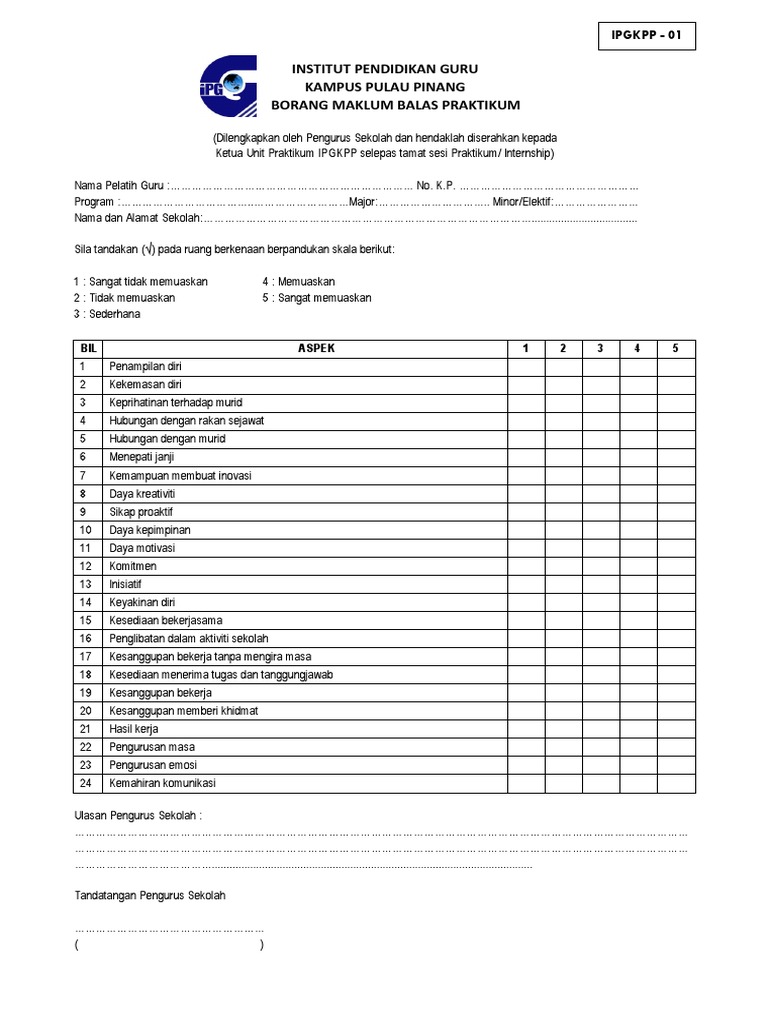 Pengetahuan bidang serta kesediaan sikap guru pelatih. Tahap kesediaan guru dalam aspek pengetahuan kemahiran dan sikap terhadap pelaksanaan pbk adalah sederhana tinggi dengan nilai min purata 3 9903 yang menunjukkan guru bersedia untuk melaksanakan pbk dalam modul vokasional. Dapatan soal selidik ini dapat membantu kpm merangka pelan tindakan penambahbaikan pelaksanaan pbs. Dalam kajian ini set soal selidik diedarkan kepada.