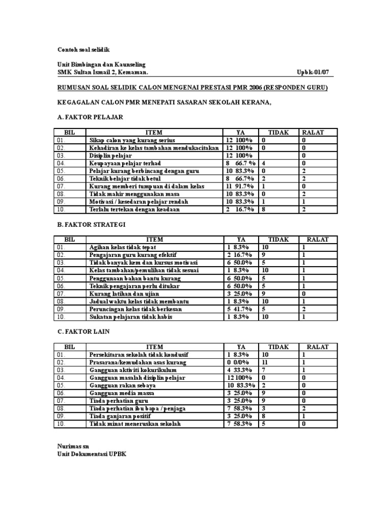 Anda diminta menjawab setiap pernyataan secara jujur. Kerjasama y dihormati tuan puan juga dipohon agar dapat mengembalikan borang soal. Related posts to contoh borang soal selidik untuk guru contoh borang soal selidik untuk guru 2018 01 15t10 12 00 08 00 rating. Academia edu is a platform for academics to share research papers.
