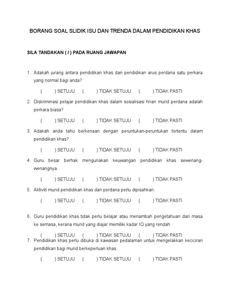 Portal rasmi kementerian pendidikan malaysia. Soal selidik ini bertujuan untuk mengenalpasti kepuasan diri pelajar di fakulti pendidikan fp soal selidik ini terbahagi kepada 2 dua bahagian a dan b. Slideshare uses cookies to improve functionality and performance and to provide you with relevant advertising. Sebarang maklumat yang diberikan dalam boring soal selidik ini akan dianggap rahsia dandigunakan untuk tujuan kajian sahaja 4.