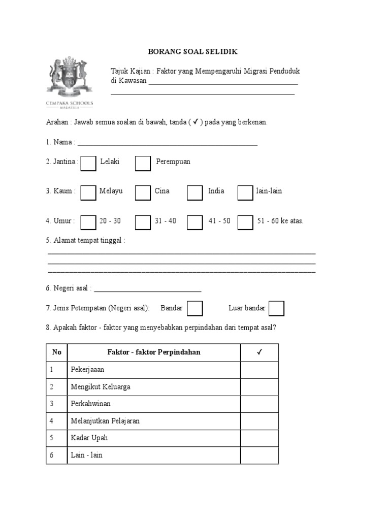 Borang soal selidik rukun tetangga. Related posts to contoh borang soal selidik rukun tetangga contoh borang soal selidik rukun tetangga 2017 07 01t17 05 00 07 00 rating. Admin dari blog contoh soal terbaru 2019 juga mengumpulkan gambar gambar lainnya terkait contoh borang soal selidik pengajian am perpaduan dibawah ini. Sila berikan pandangan ikhlas berdasarkan pengalaman anda. Data kuantitatif dikumpul dengan menggunakan borang soal selidik yang disesuaikan daripada leadership behavior description questionnaire oleh stogdill 1974 yang melibatkan seramai 320 responden terdiri daripada jiran muda jiran wanita rukun tetangga dan jiran usia emas.