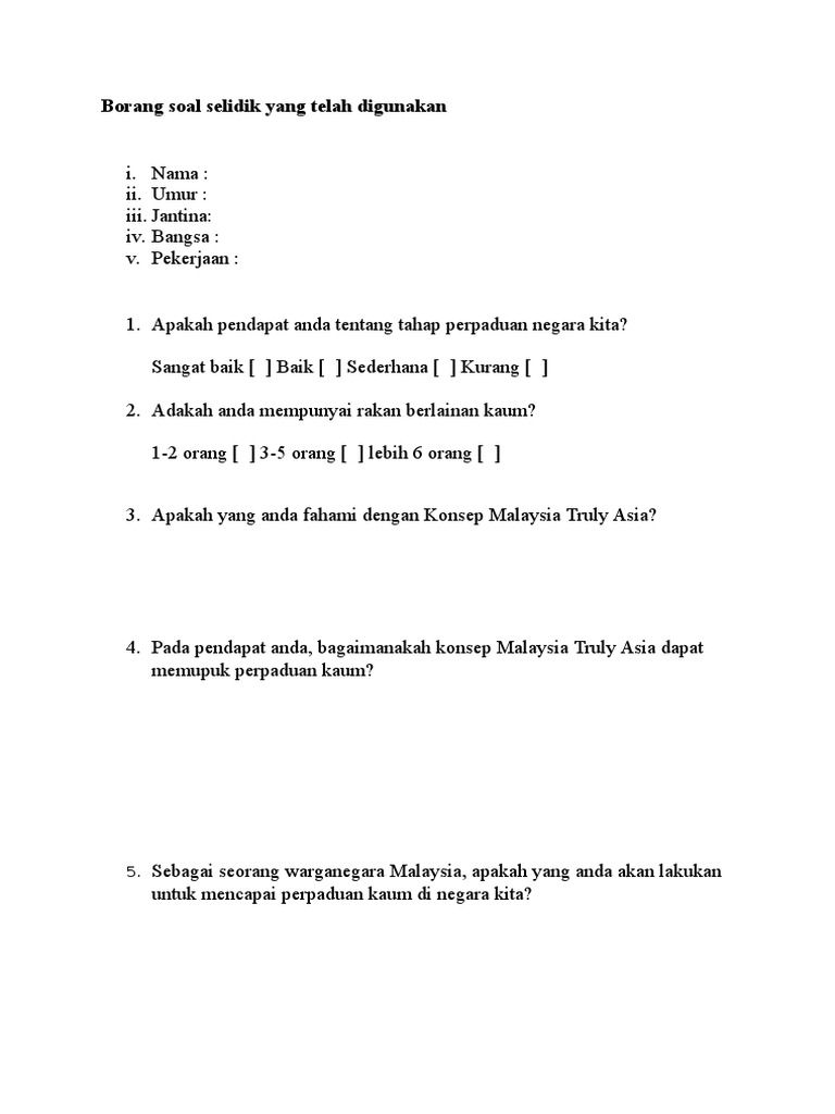 Borang soal selidik tentang perpaduan kaum. Borang soal selidik tentang perpaduan kaum. Related posts to contoh borang soal selidik perpaduan kaum contoh borang soal selidik perpaduan kaum 2017 12 11t21 11 00 08 00 rating. Related posts to contoh borang soal selidik perpaduan kaum contoh borang soal selidik perpaduan kaum 2018 05 19t13 19 00 07 00 rating. Pre university of smk tambunan kerja projek p am stpm 2014.