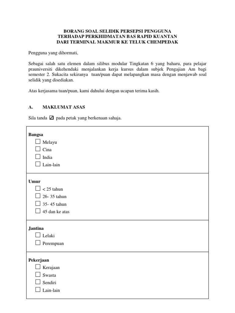 Related posts to contoh soalan soal selidik tertutup. Google facebook twitter newer post older post search here. Menurut gillham 2000 terdapat beberapa sebab mengapa borang soal selidik menjadi pilihan kebanyakkan pengkaji. Soal selidik merupakan satu set soalan atau item dalam bentuk tulisan.