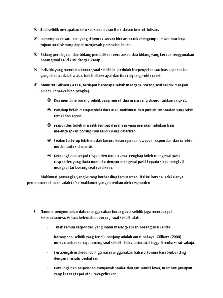 Datang di bawah penyelidikan kuantitatif. Ia merupakan satu alat yang dibentuk secara khusus untuk mengumpul maklumat bagi tujuan analisis yang dapat menjawab persoalan kajian. Soal selidik merupakan satu set soalan atau item dalam bentuk tulisan 1. Soal selidik merupakan satu set soalan atau item dalam bentuk tulisan.