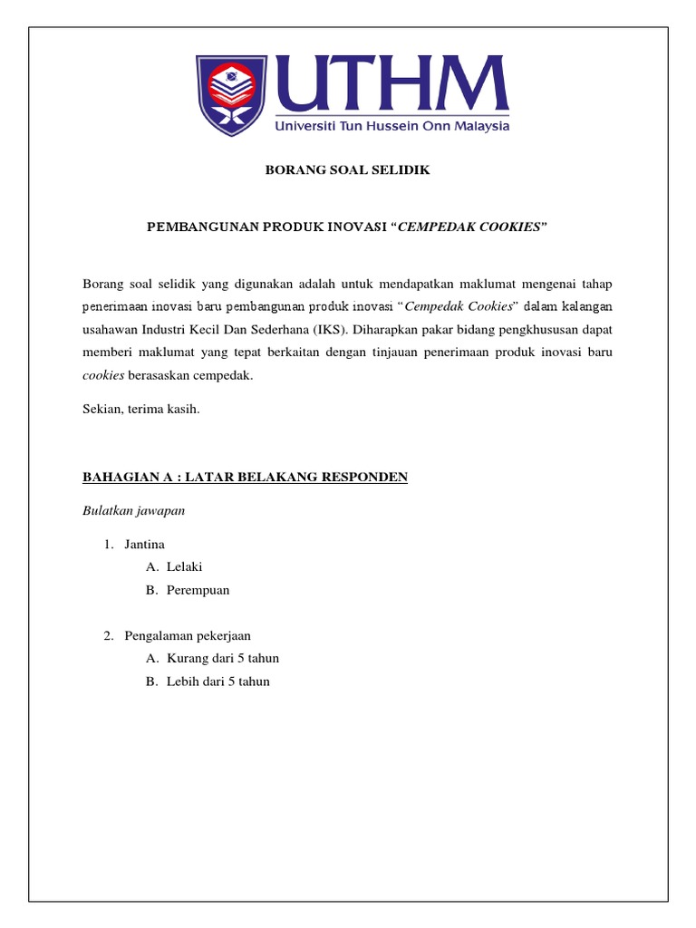 Borang soal selidik usahawan. Xi 3 4 lokasi kajian 53 3 5 populasi dan persampelan kajian 53 3 6 sumber data 58 3 7 3 7 1 instrumen kajian pembangunan borang soal selidik 56 57 3 8 3 8 1 3 8 2 kesahan dan kebolehpercayaan kesahan kajian rintis 59 59 60 3 9 prosedur pengumpulan data 61 3 10 analisis data 62 bab 4 dapatan kajian 4 1 pengenalan 65 4 2 pengumpulan data 66 4 3. Maklum balas tuan puan adalah amat penting bagi pihak kami untuk memperbaiki perkhidmatan yang kami sediakan. Barangan perniagaan anda berasal dari negara mana barangan tempatan import dari university of science malaysia management wus101 spring 2016 soal selidik profail usahawan september 2015 pdf. Borang soal selidik bss soal selidik terima kasih atas kesudian tuan puan kerana meluangkan masa menjawab soal selidik berikut.