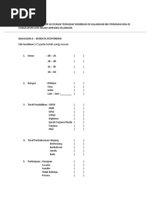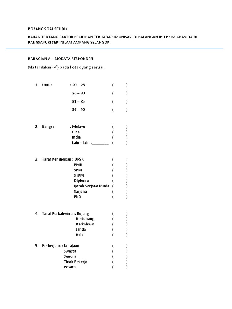 Borang soal selidik vaksin. Isikan borang soal selidik dengan lengkap dan klik butang pengesahan. Sekiranya anda tidak mempunyai e mel atau tidak tahu mengisi soal selidik secara online pihak jabatan perangkaan malaysia dosm akan melakukan temu ramah secara bersemuka di tempat kediaman anda bermula pada 7 24 oktober 2020. Jika anda mencari contoh borang soal selidik syarikat maka anda berada di tempat yang tepat blog contohked memiliki banyak koleksi gambar seperti contoh borang soal selidik syarikat gambar ini tersedia dalam format jpg png gif. Borang soal selidik tahap sensitiviti amp reponsiviti terhadap isu ke related posts to contoh borang soal selidik penggunaan internet contoh borang soal selidik penggunaan internet 2016 11 28t10 19 00 08 00 rating.