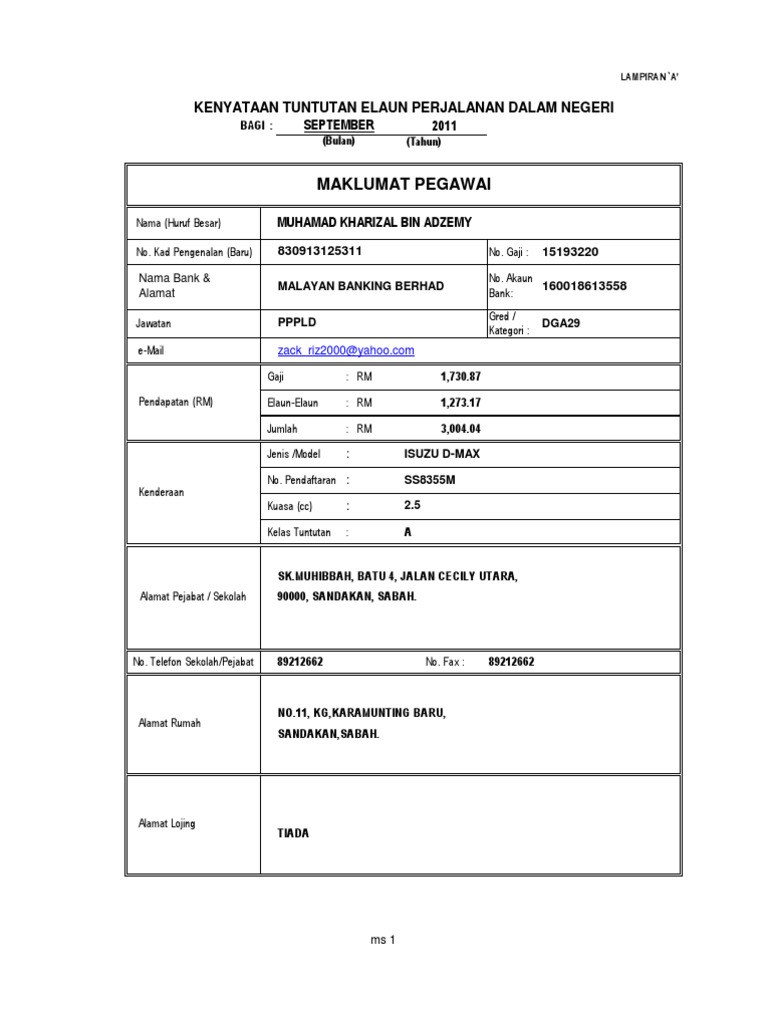 Perjalanan pengawasan asingkan ikut bulan pecahan tuntutan. Ahmad yusri bin ismail no kad pengenalan. Admin mendapat maklum bahawa format borang tuntutan perjalanan atau t t lembaga peperiksaan lpm telah berubah. Dg 41 jawatan.