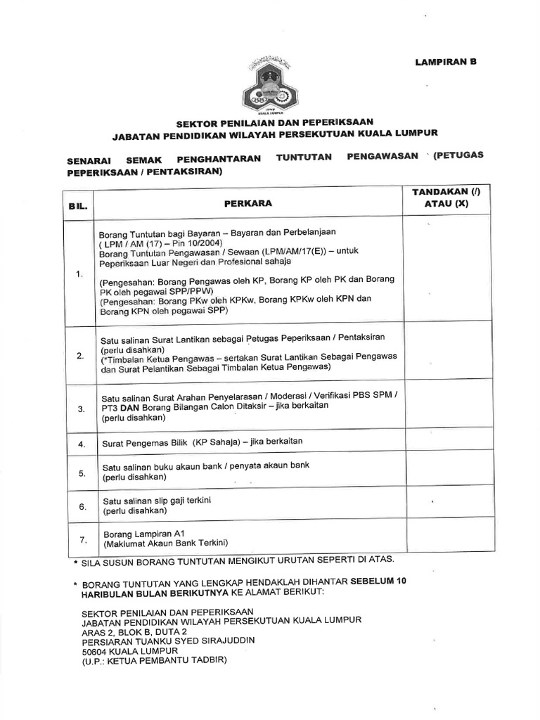 1 4 borang tuntutan hendaklah diisi dengan lengkap dan dikemukakan bersama sama dengan dokumen kelulusan perjalanan dan dokumen sokongan lain seperti bil resit atau lain lain dokumen yang dapat mengesahkan perjalanan atau perbelanjaan. Borang b tuntutan kedua dikemukakan sebelum atau pada 10hb bulan berikutnya borang c surat memo e mel arahan bertugas rasmi salinan jadual ke mahkamah salinan perlulah diakui sah oleh anggota lain. Format borang tuntutan perjalanan. Tuntutan perubatan perjalanan.
