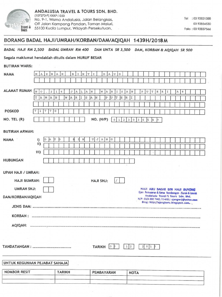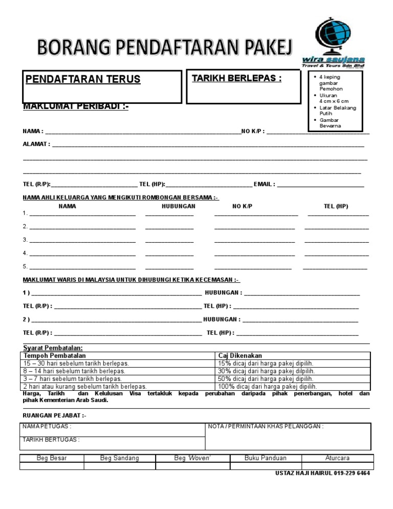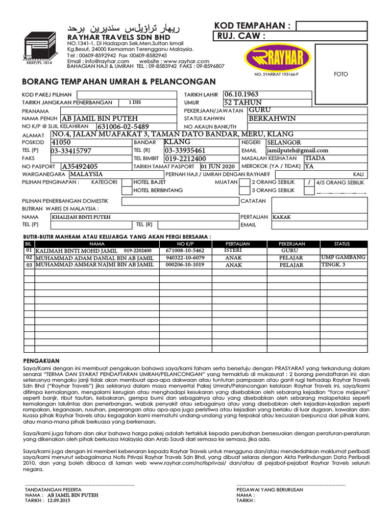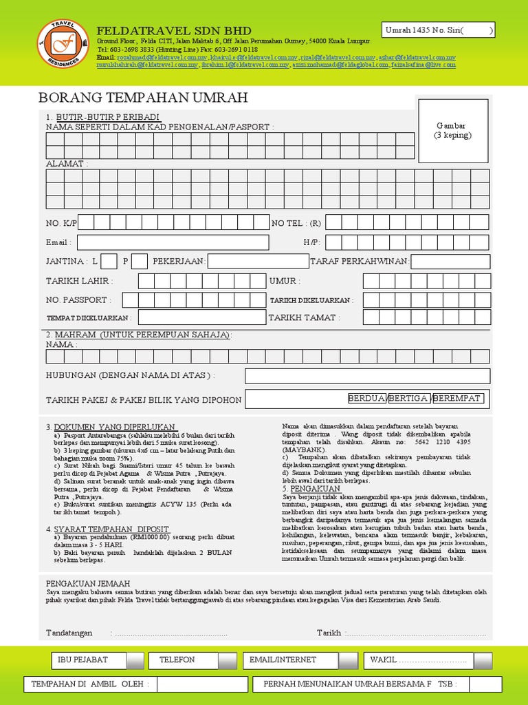 Borang umrah. Pekeliling perkhidmatan ini bertujuan untuk melaksanakan keputusan kerajaan. Tts mempunyai pengalaman luas dan menyeluruh dalam pengendalian perkhidmatan umrah umrah dan ziarah dan badal haji untuk jemaah individu ataupun berkumpulan yang berniat untuk mengejarkan ibadah umrah dan berhajat untuk membuat. Raya dompak tanjungpinang 29124 provinsi kepulauan riau. Nanik rahmawati m si abdul hafiz pemberdayaan masyarakat pesisir nanik rahmawati m si ss 1301 dosen ke program studi deby susilawaty.