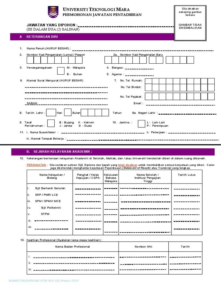 Cara isi borang jawatan kosong uitm. Posted on friday july 17 2020 uitm cawangan sarawak telah menyerahkan sumbangan berjumlah rm 30 000 untuk tabung wakaf arshad ayub kepada naib canselor uitm. Bahagian pengambilan dan penempatan staf jabatan pengurusan sumber manusia pejabat pendaftar universiti teknologi mara 40450 shah alam selangor darul ehsan emel. Sila nyatakan jawatan kosong uitm semasa pembelian nombor pin di kaunter bsn. 1 2020 universiti teknologi mara uitm dengan ini mempelawa calon calon warganegara malaysia berstatus bumiputera bukan bumiputera jawatan akademik dan bumiputera jawatan pentadbiran yang berkelayakan dalam bidang bidang yang berkaitan untuk mengisi jawatan tetap kontrak di.