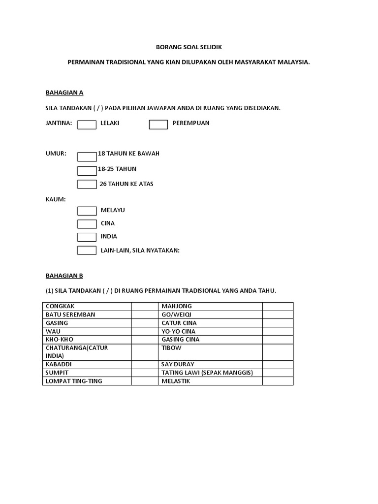 Bahagian a data demografi responden. Contoh borang soal selidik kem motivasi. Soal kelas 2 gotong royong ayo pilih salah satu jawaban yang benar 1. Contoh blog eka lesmana.