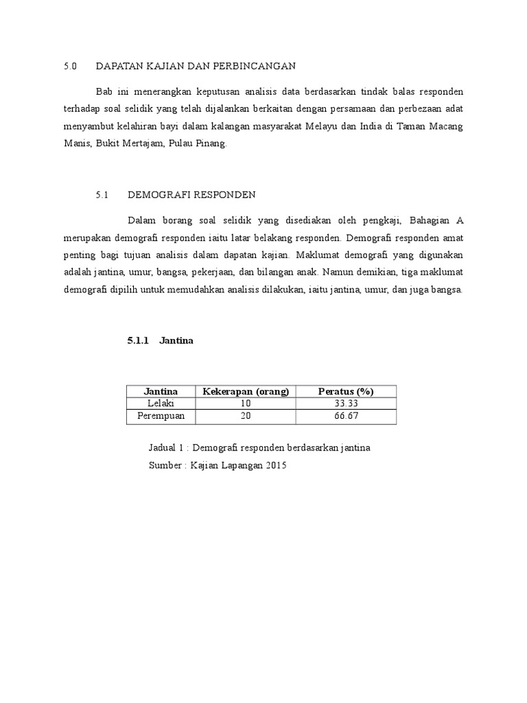 Kawasan kajian ini terletak kira kira 4 km dari bandar jasin dan 28 km dari bandaraya melaka. Soal selidik ini bertujuan untuk mengenal pasti sejauhmanakah adat selepas kelahiran bayi masih diamalkan dalam masyarakat melayu di kampung sepayang kuala rompin pahang. Soal selidik ini adalah bagi memenuhi kerja kursus mata pelajaran pengajian am 900 4. Kajian yang digunakan ialah kajian tinjauan.