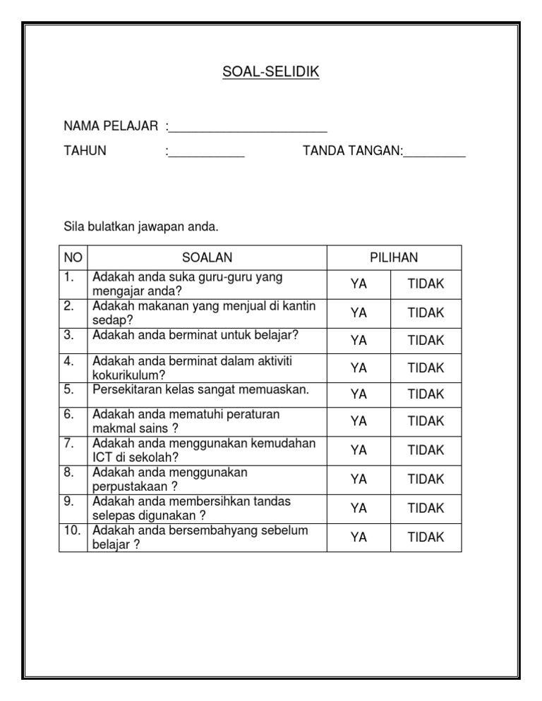 Contoh borang soal selidik kokurikulum. Contoh borang soal selidik kajian geografi contoh borang soal selidik. Anda bisa mendownload atau mencetak gambar atau foto contoh borang soal selidik. Sebarang maklumat yang diberikan dalam boring soal selidik ini akan dianggap rahsia dandigunakan untuk tujuan kajian sahaja 4. Semua maklumat adalah untuk kegunaan kajian sahaja.